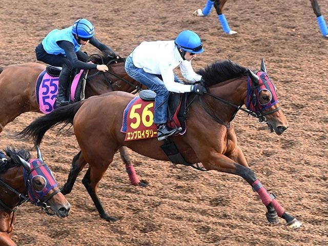 The movement was befitting of a filly chasing history. Embroidery, coming off her triumph in the G1 Oka Sho, lined up for a three-horse gallop on the slope course at Miho. Sandwiched between two stablemates for much of the move, she smoothly accelerated while maintaining tight contact with Bestseller and Saffron Hero. Trainer Kazutomo Mori had told Lemaire to let her lengthen if needed, but she travelled easily throughout and finished in unison with both workmates.